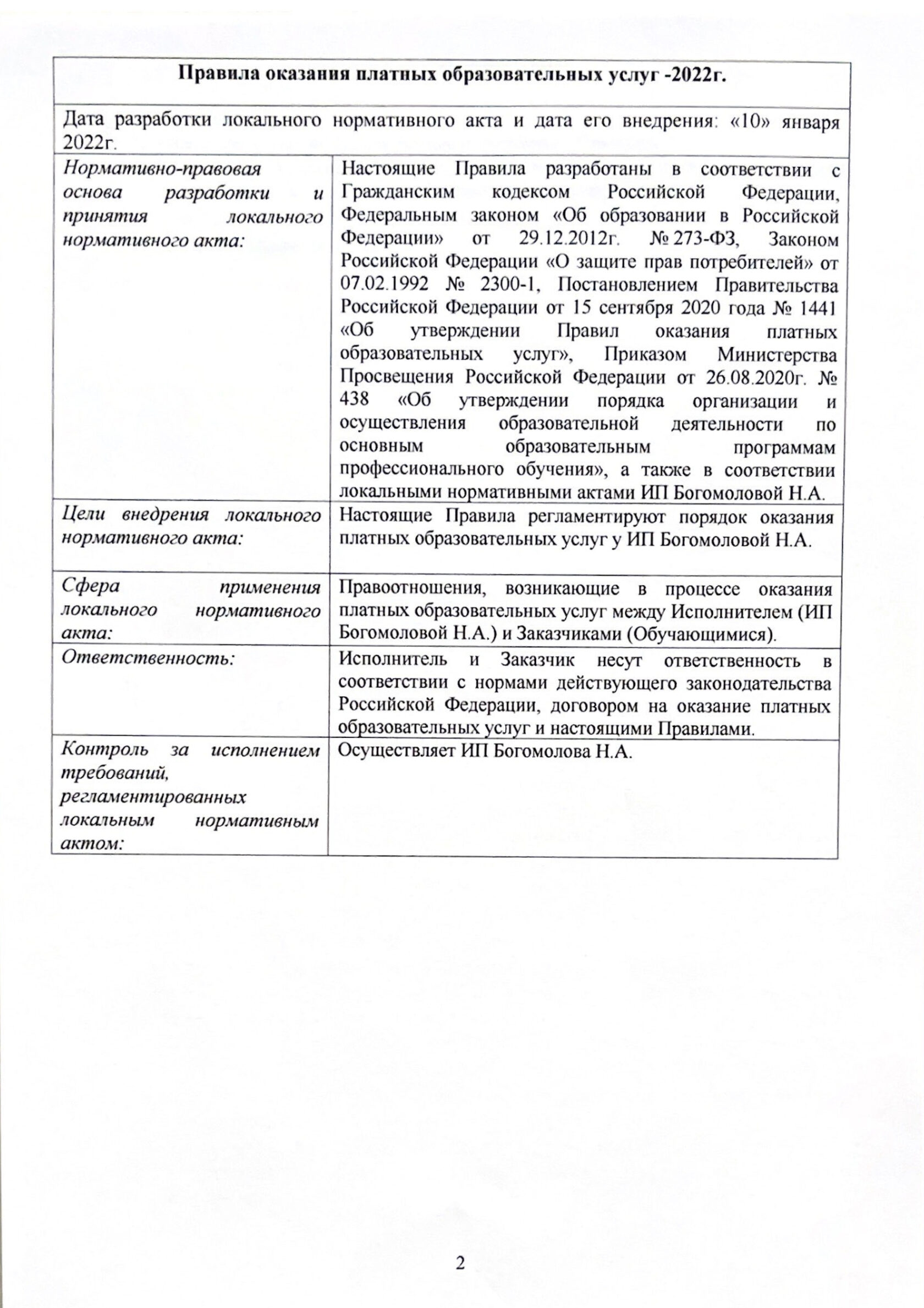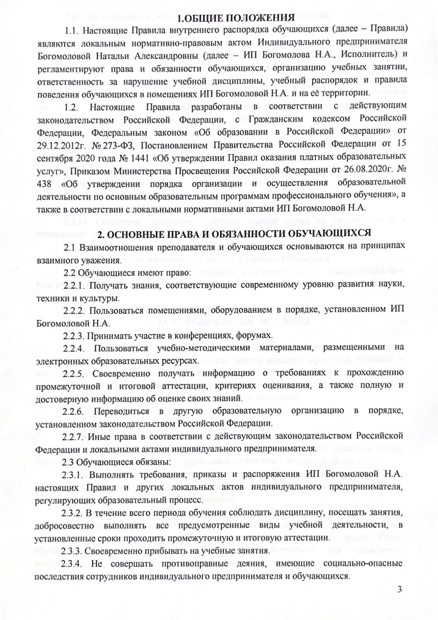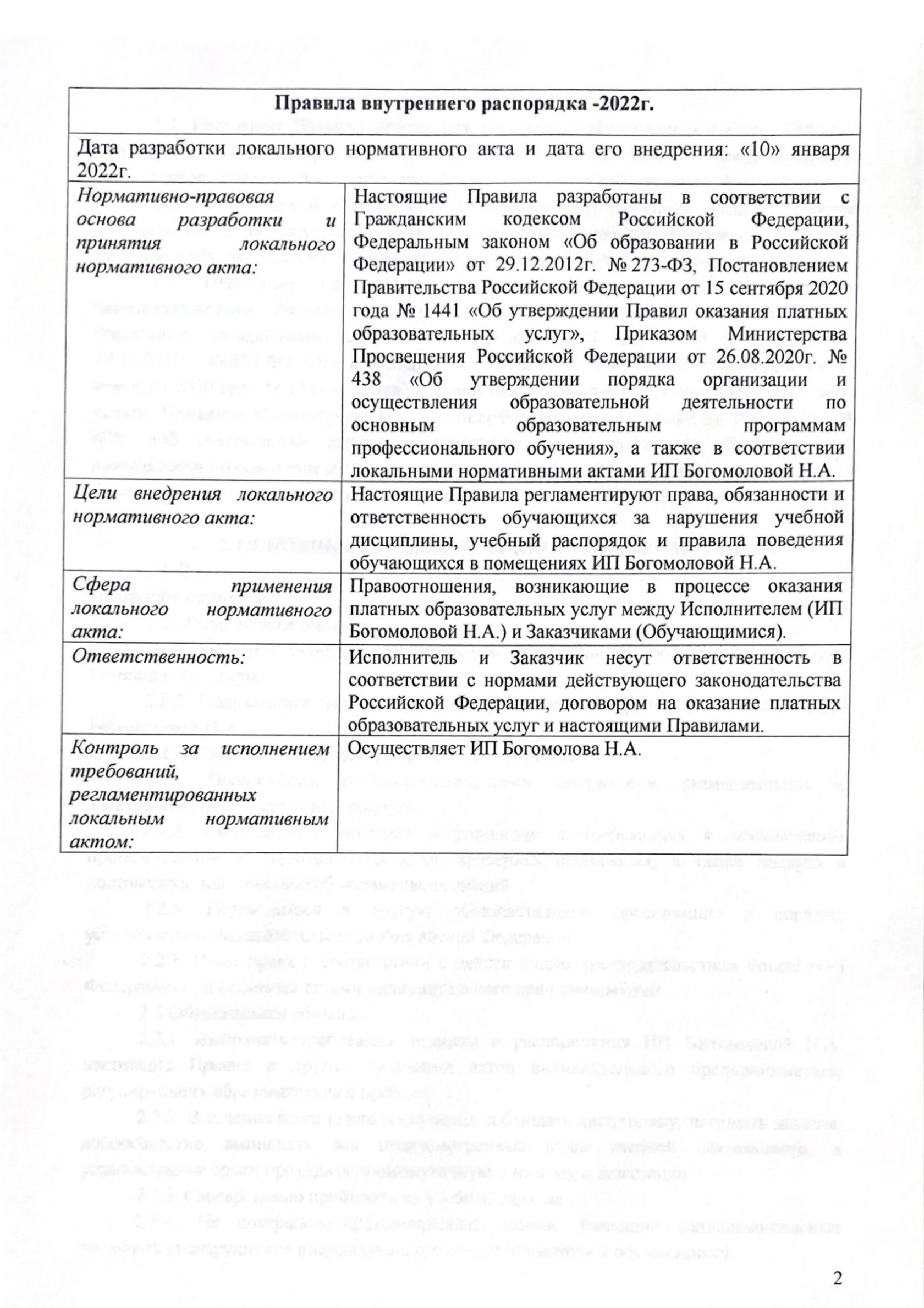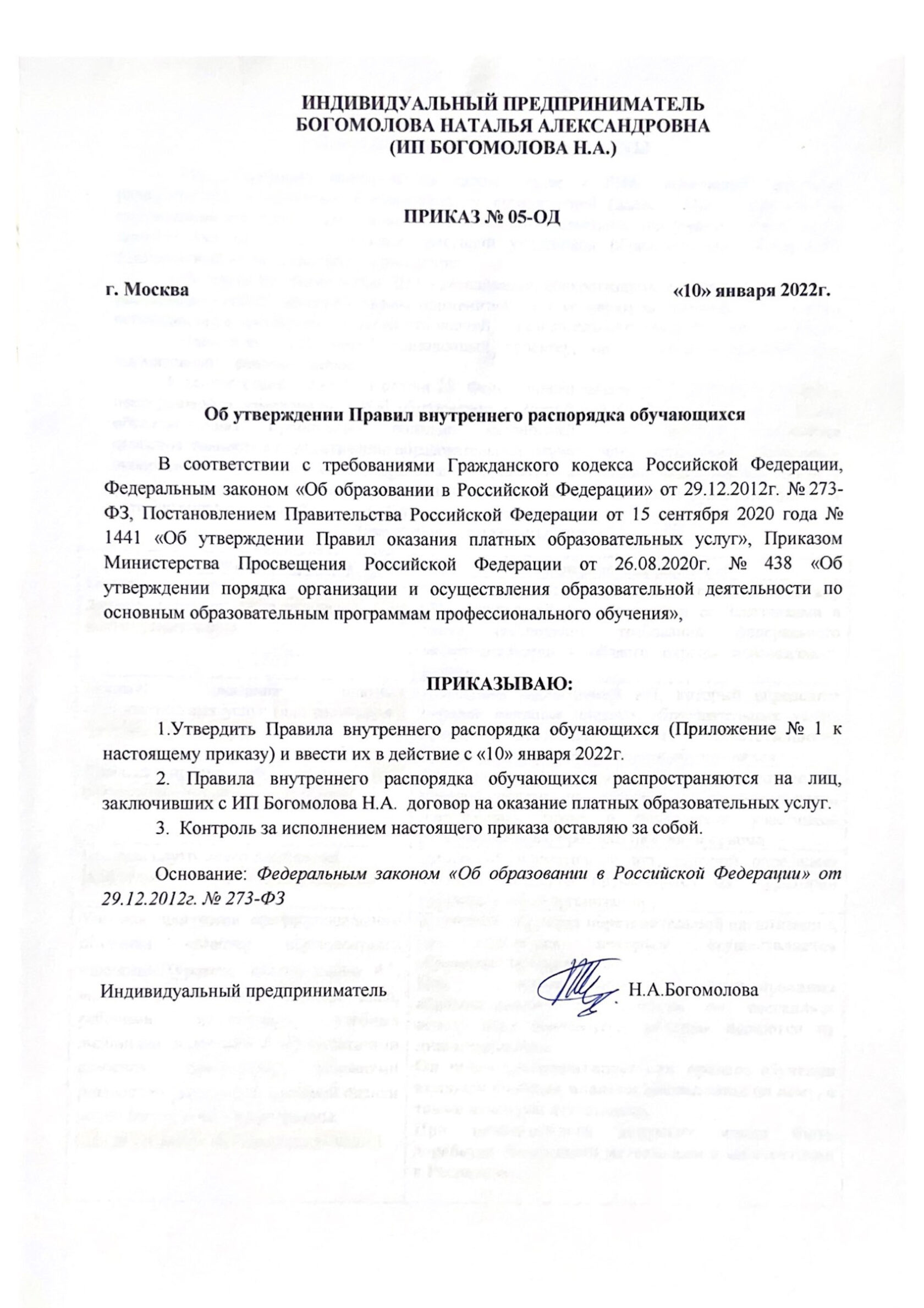 ИП Богомоловой Натальи Александровны осуществляется в полном соответствии с действующим законодательством: